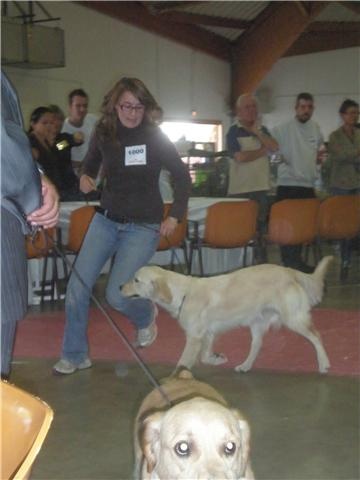 10 mois-Jolie tête féminine. Bonne pigmentation. Bonne sortie d'encolure. Ligne du dos et attache de queue correcte. Préfairerais une angulation avant et arriere plus prononcée, une poitrine plus dévelloppée pour son age et un peu plus d'ossature. Bon pieds. Mouvement correcte. Excelente présentation.